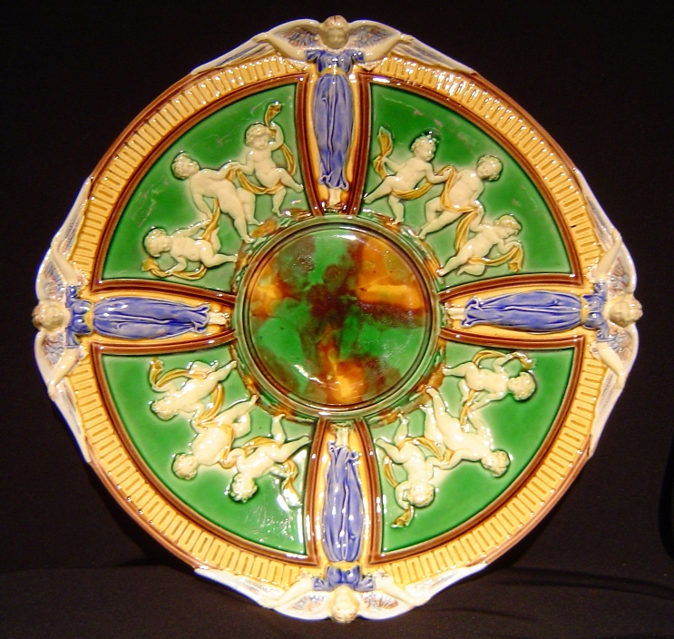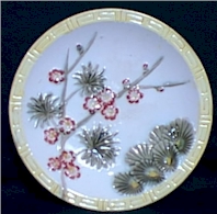 Botanical Pattern with Leaves and Flowers and Reticulated Rim
